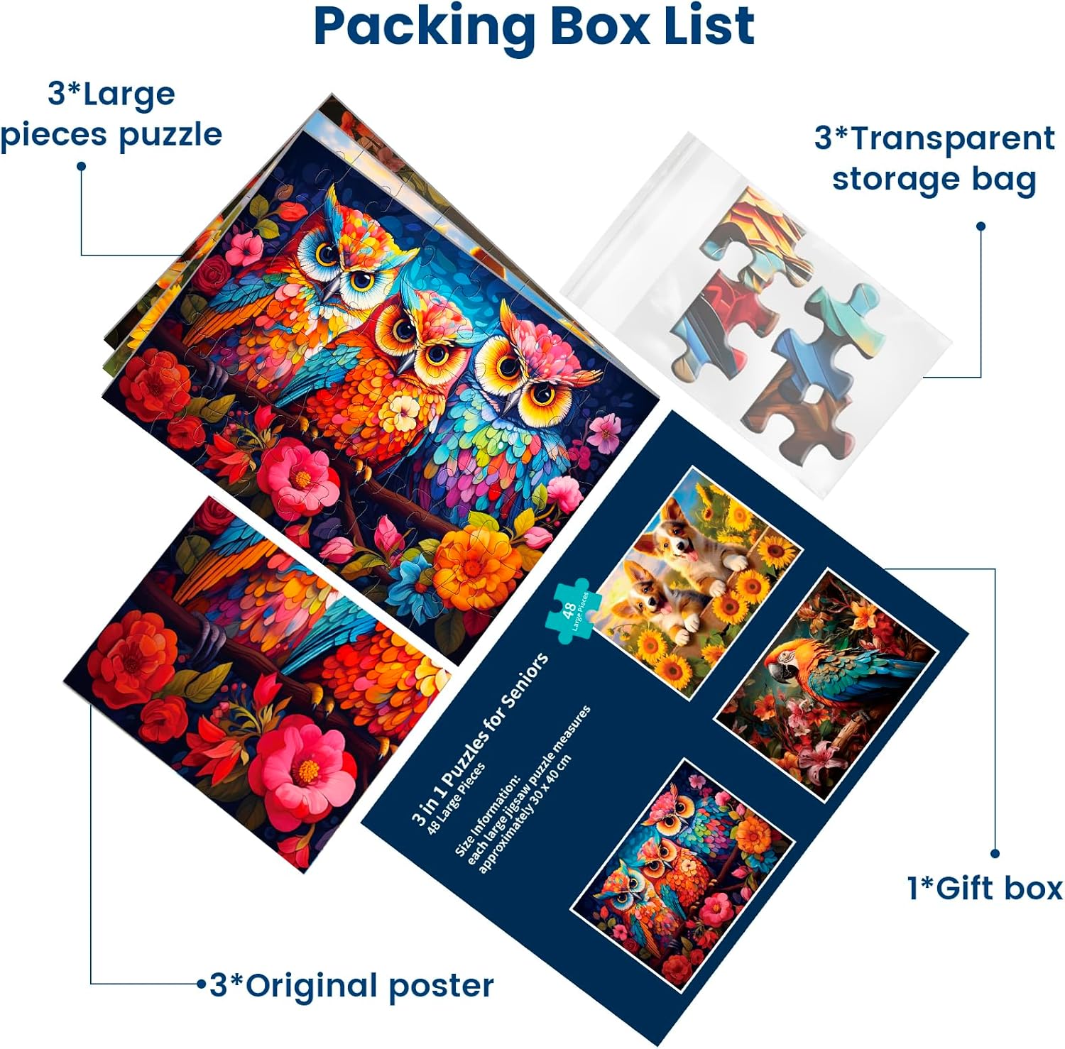 🍀[What You Will Get]:You will receive 3 sets of Alzheimer’s products, each set has 48 pieces of puzzles.These large piece puzzles are specially designed for seniors, including those with dementia and Alzheimer’s, aiming to infuse joy into their daily lives and delay cognitive decline.