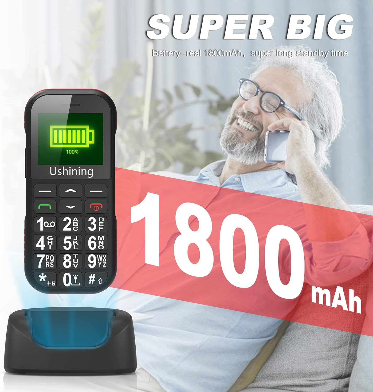 【Simple Operating System 】USHINING 4G senior cell phone, easy to use operation system, big menu icon, large font, high volume and high-definition loudspeakers, Built-in audio, video, Bluetooth, External FM audio, calculators, alarm clocks, calendars, and it can store up to 100 phone book entries. Equipped with a charging dock, very convenient for the elderly to charge the phone.