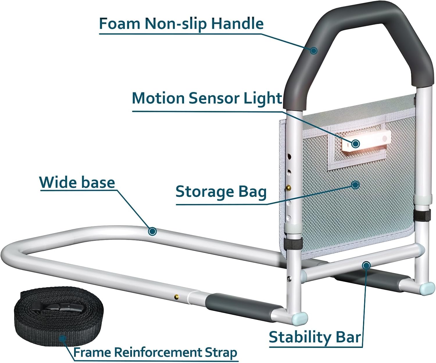 The ArixMed Bed Assist Rail provides bedside support for seniors, back surgery patients, and individuals with limited mobility, preventing falls and ensuring they can independently get in and out of bed.