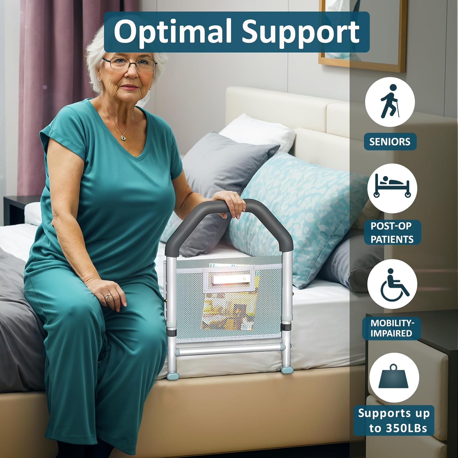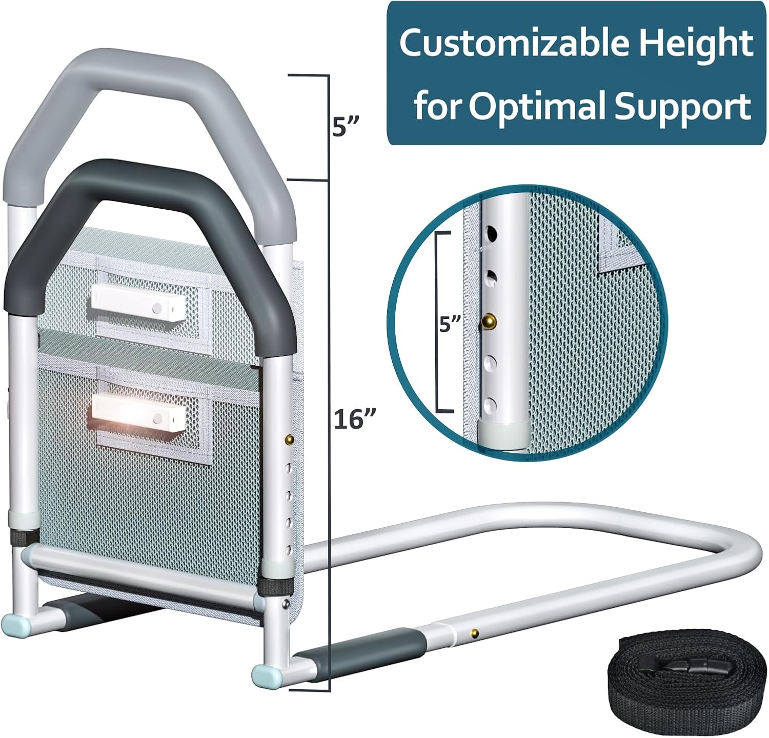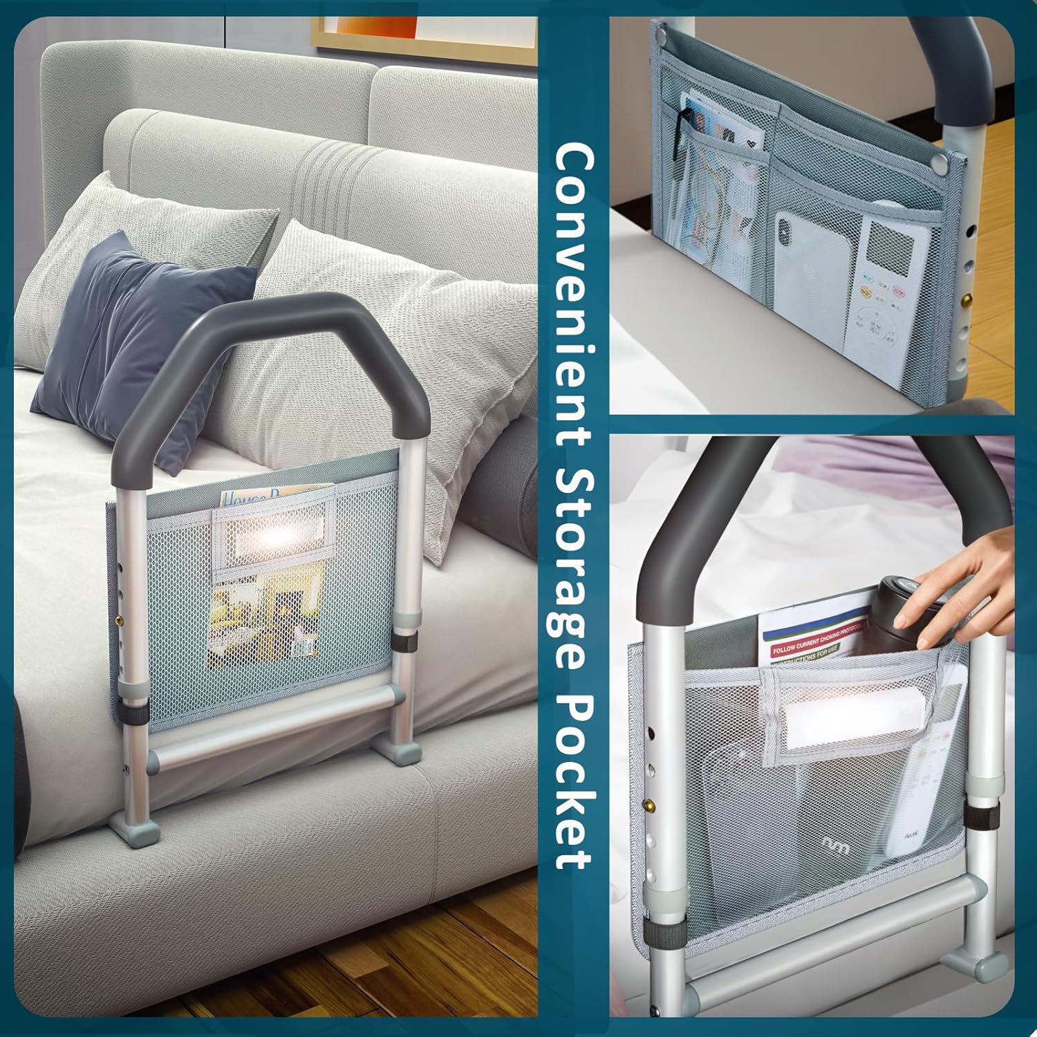 Convenient Storage: Bed assist rails come equipped with a versatile storage bag. This high-quality, lightweight, and pouch is designed to store essential items such as glasses, remote controls, medications, magazines, and more. It keeps items within easy reach, providing added bedside convenience.