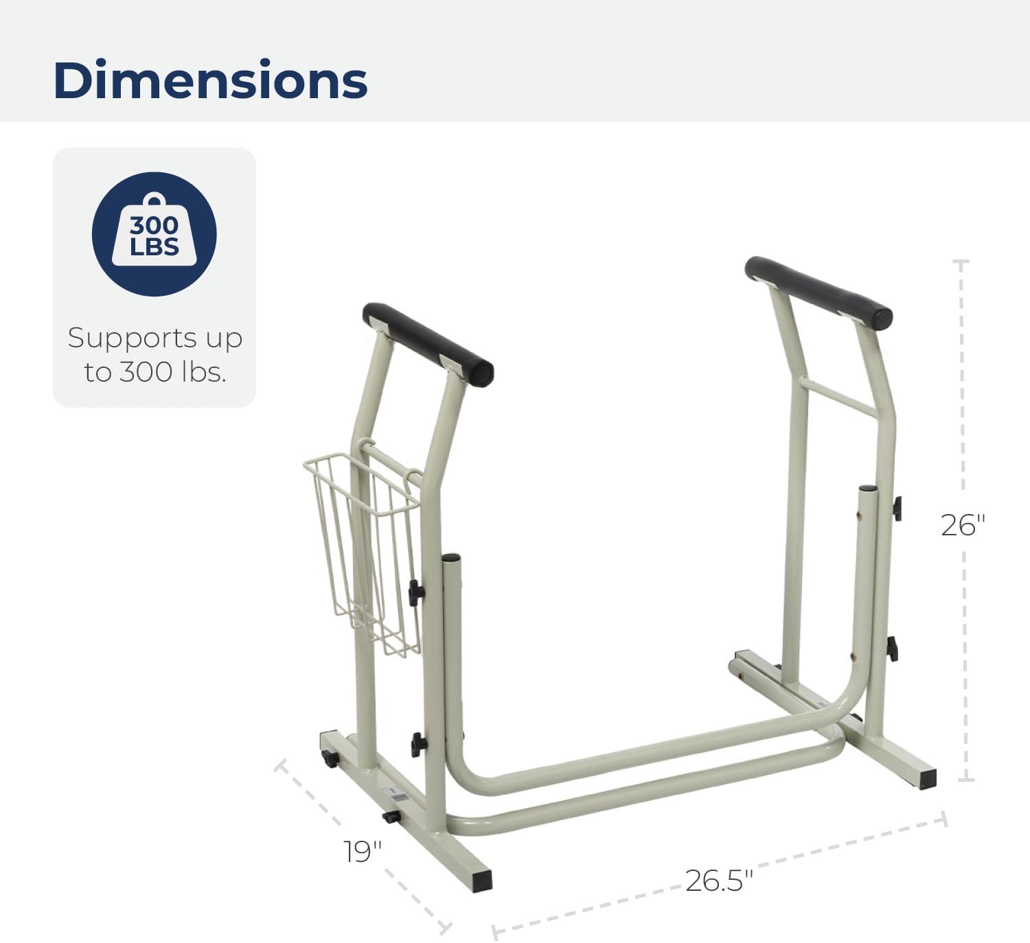 Toilet Safety Frame: Designed to fit just about any style of toilet, our freestanding handrail for the bathroom makes it easier for users with injuries, disabilities, or balance problems to use the toilet