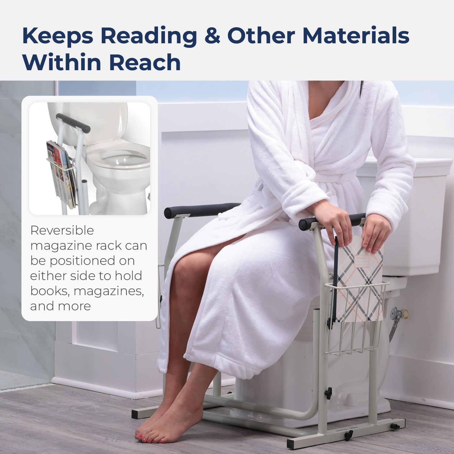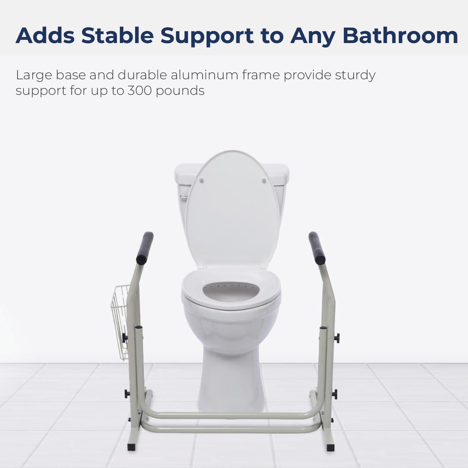 Secure and Scratchproof: Our standalone toilet rails come equipped with non-wearing rubber pads for scratch-proof installation