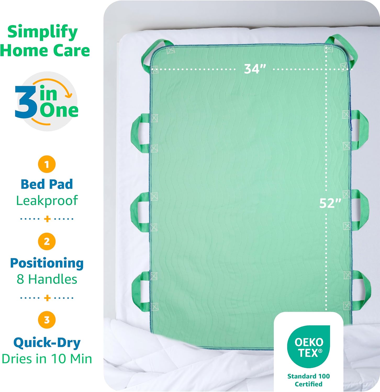 Lighten the Load – Your nonslip, washable bed pad for the elderly or bedridden has 8 reinforced handles to help relieve pressure in your back and arms as you shift or transfer up to 400 lbs.