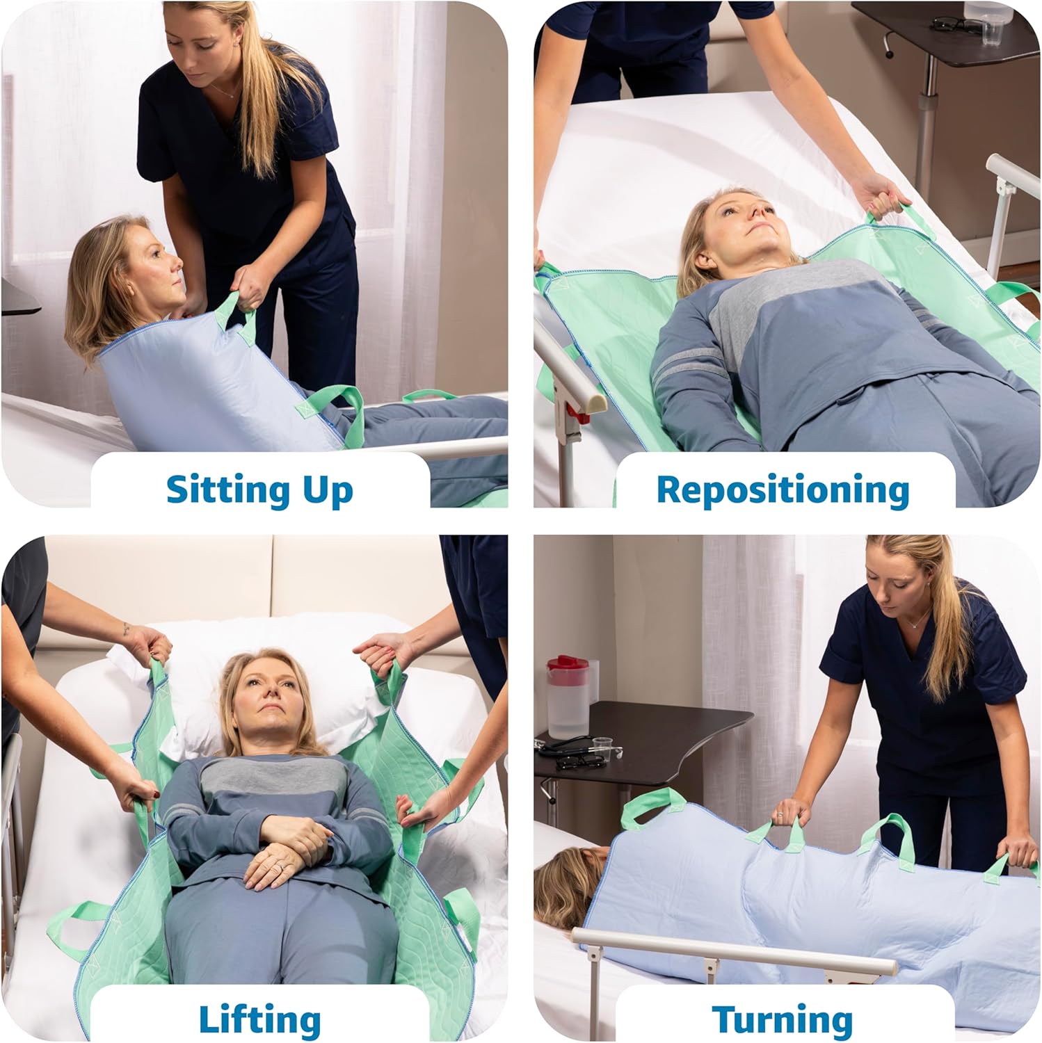 Customers find the bed pad effective for moving patients, with strong handles that hold up well with use and washing. The product is easy to use and clean, with one customer noting it’s particularly helpful for caregivers. They appreciate the soft fabric, good size that covers the bed, and water resistance that keeps the bed dry.