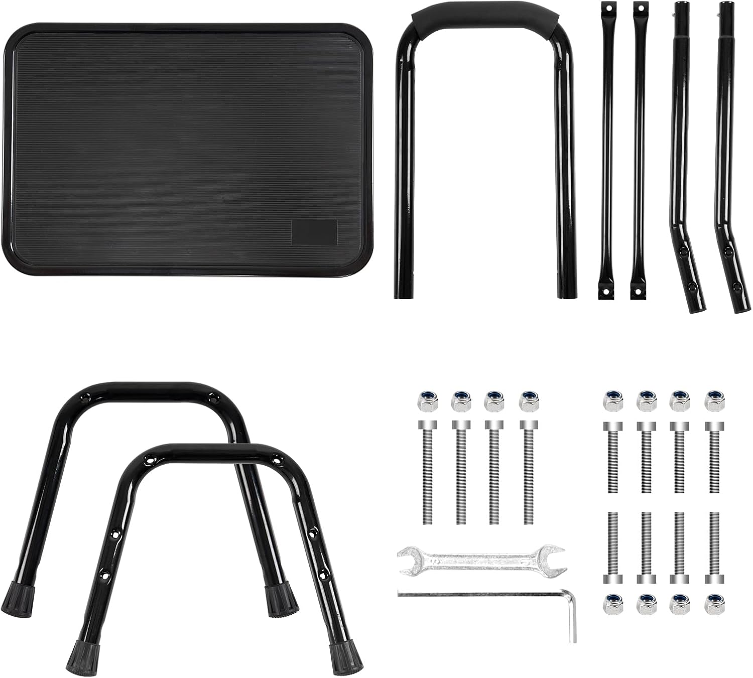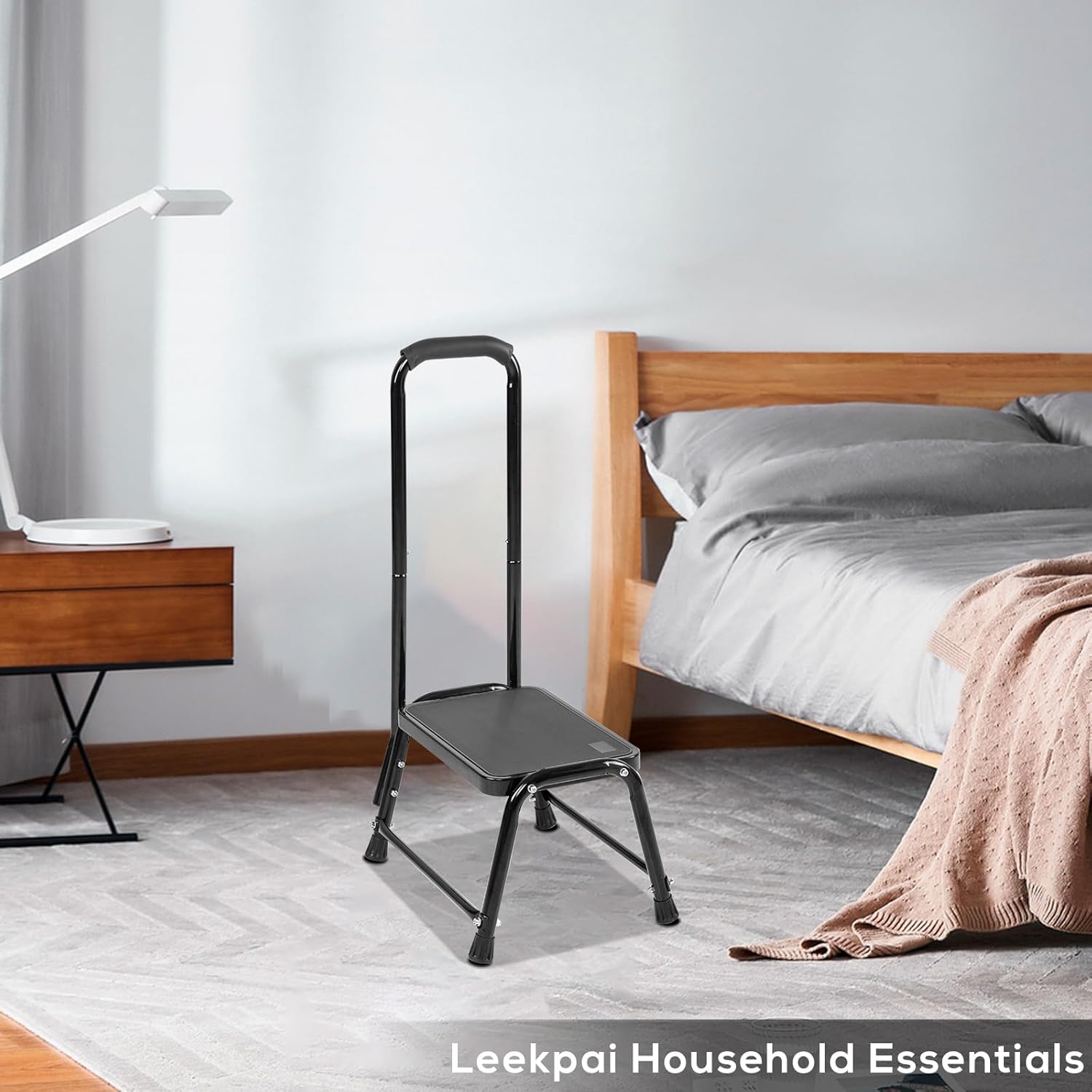 Sturdy Step Stool with Handle Non-slip safety stepFor Adults, SeniorsHeavy Duty holds up to 330 poundsFavorite black color goes with everythingPerfect for kitchen, bathroom, bedroom closets, garageUsed in many workplaces to meet safety requirementsMade of durable steel and hard plasticPortable and lightweightExtra stable design preferred by doctorsEasy to assemble with included tool box No need to buy additional toolsComes with complete instructions