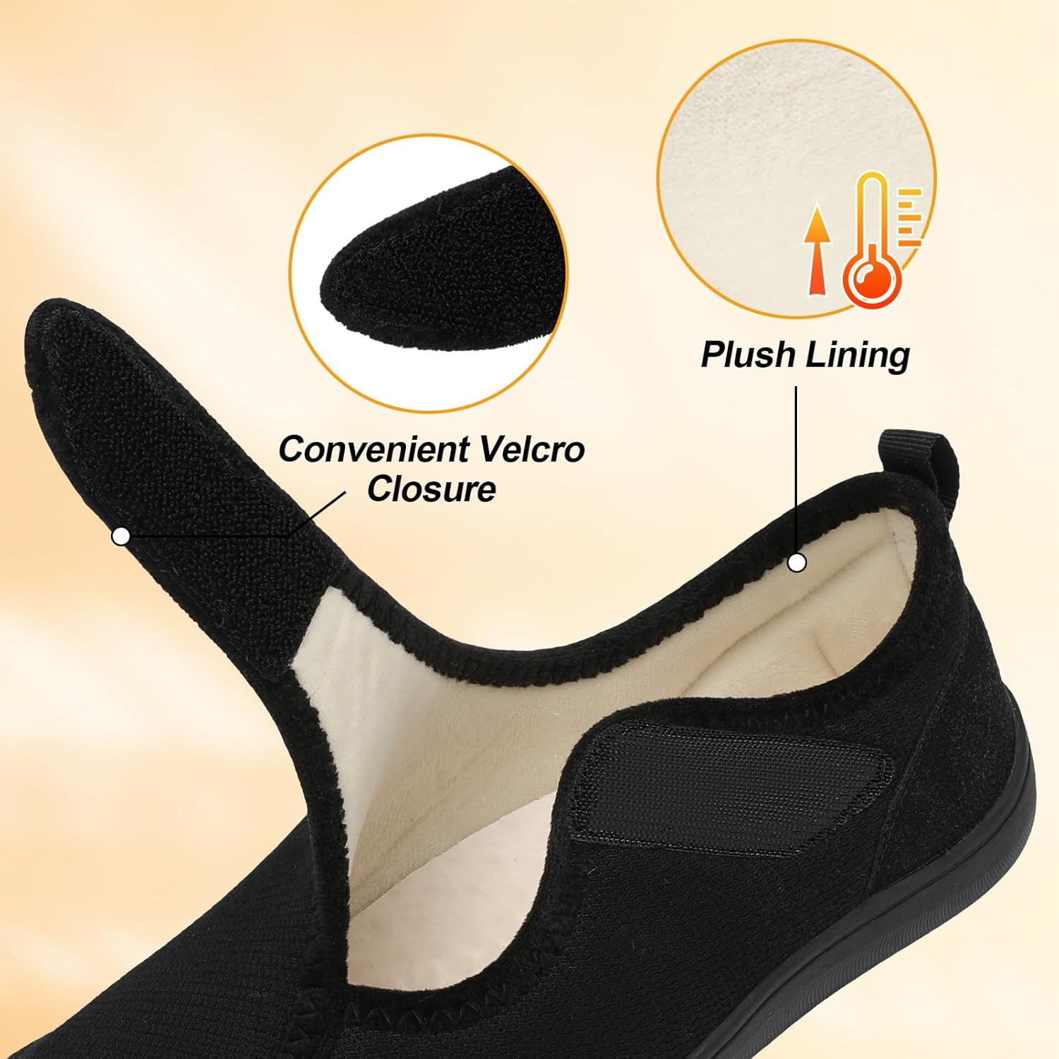 Customers find these slippers comfortable and supportive, with one mentioning they provide good arch support with simple insoles. The shoes fit well, accommodating swollen feet, and feature durable rubber soles that are suitable for gentle outdoor use. They are easy to put on, particularly for those with limited hand mobility, and are versatile enough for both indoor and outdoor wear. Customers appreciate their appearance, noting they look like real shoes with cute patterns to choose from.