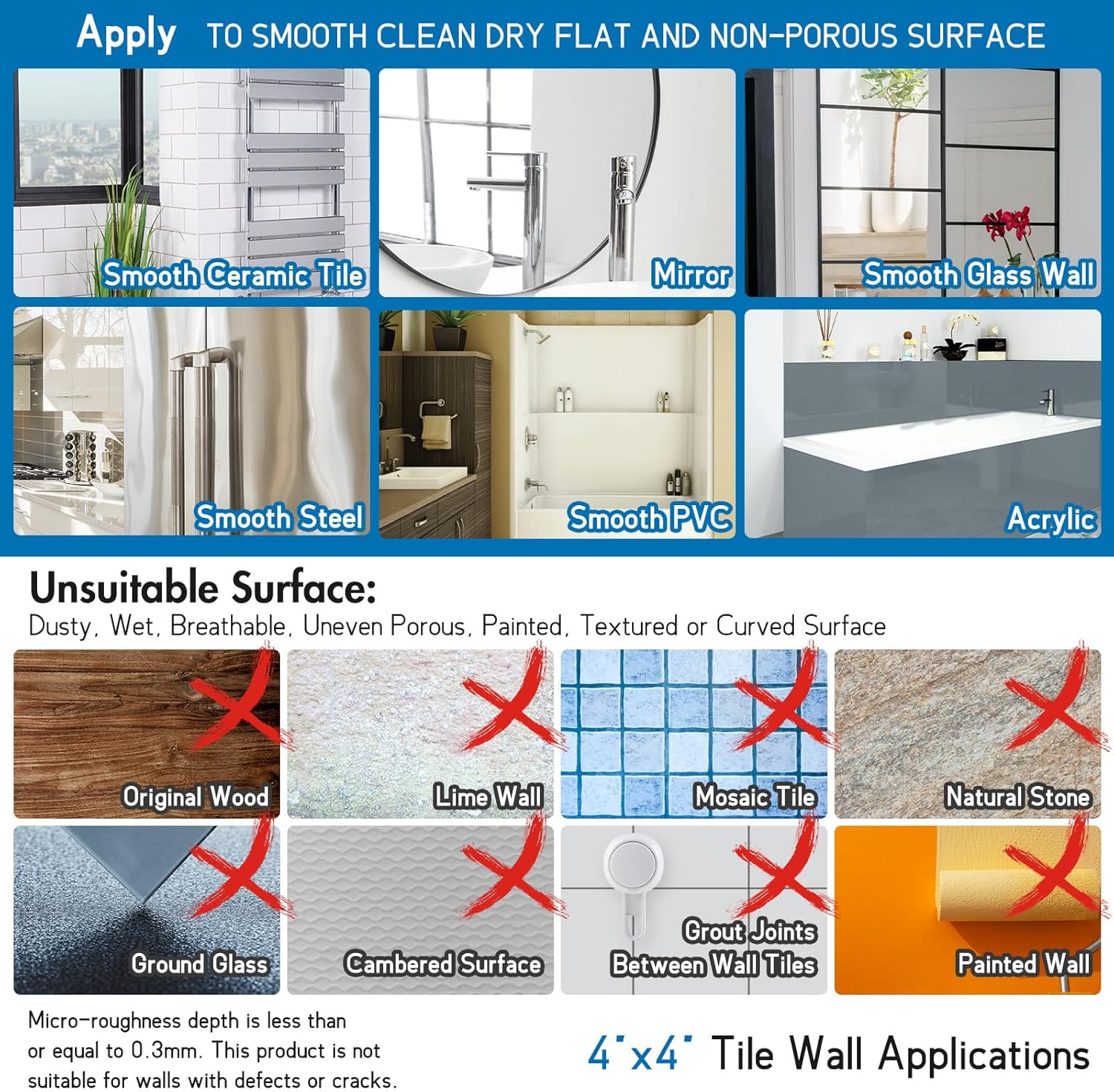 Buying Guides: For the safety of people need to use grab bar, please read this before you buy: (1) The Shower Grab Bar is used ONLY as a BALANCE ASSISTANCE – DO NOT USE IT TO SUPPORT YOUR BODY WEIGHT (2) The Suction Grab Bar measures 12 inches long EACH, Only works on tile size LARGER THAN 4×4″. (3) This Shower Handle MUST be applied on AIRTIGHT(non air permeable), smooth, flat, non-porous surfaces, such as marble, tile, glass, stainless steel, etc