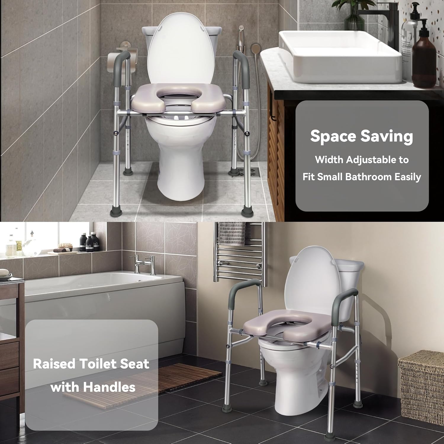 A Perfect Raised Toilet Seat with Handles for Elderly, Disabled and Pregnant.