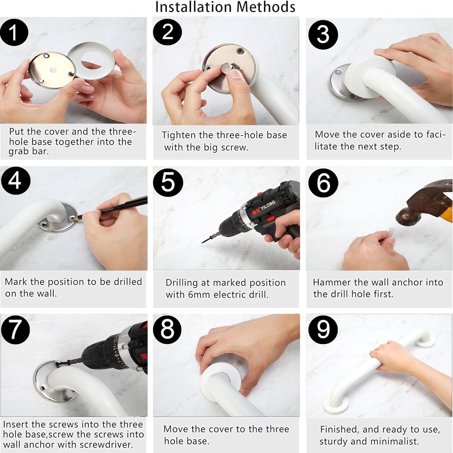 EASY TO INSTALL: You can install the grab bars including screws at anywhere you want with our assembly instructions. It is not only practical but beautiful after you install in your bathroom