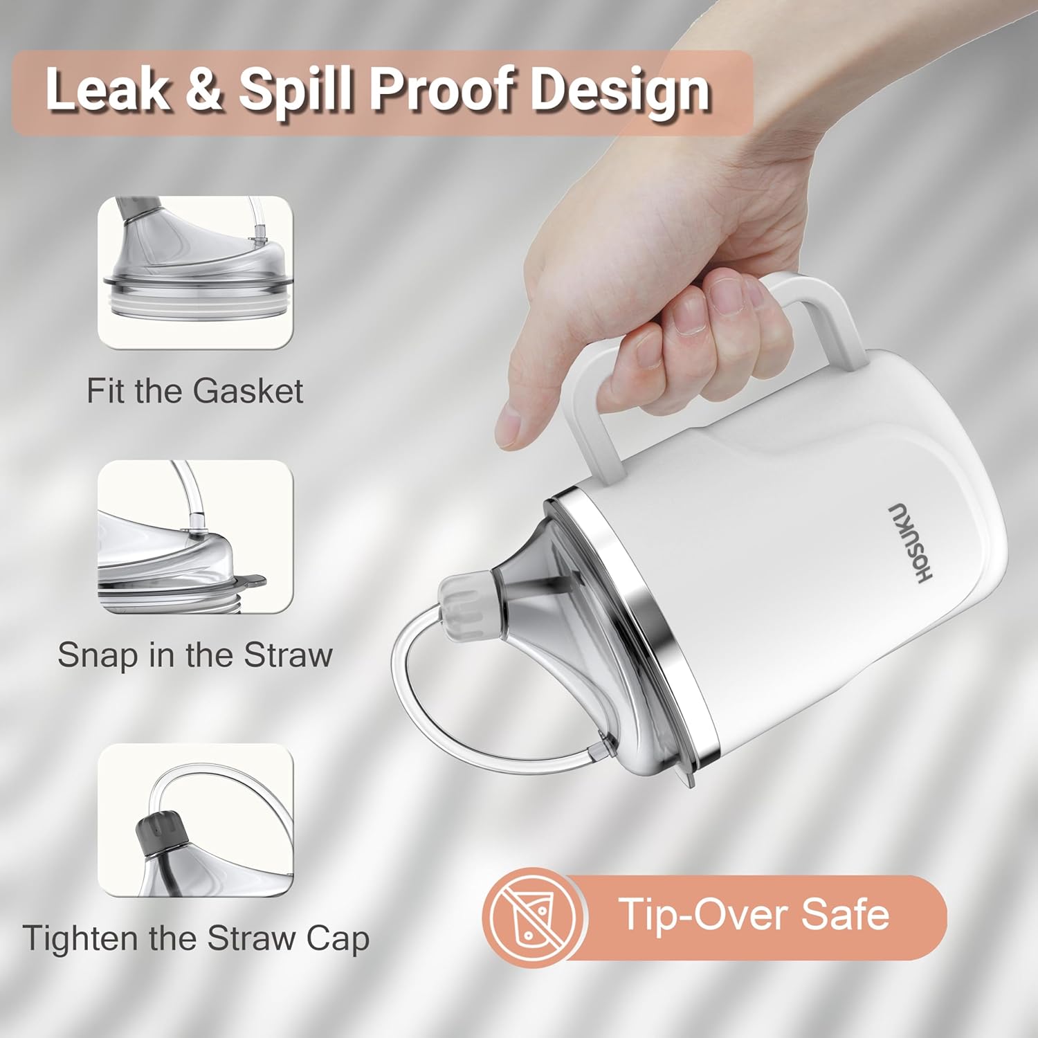 Leak-Proof Lid: The innovative leak-proof design prevents spills, making this convalescent adult sippy cup spill proof ideal for elderly users or anyone with decreased hand strength. Choose from a straw lid or a small spout lid to suit different drinking preferences and needs.