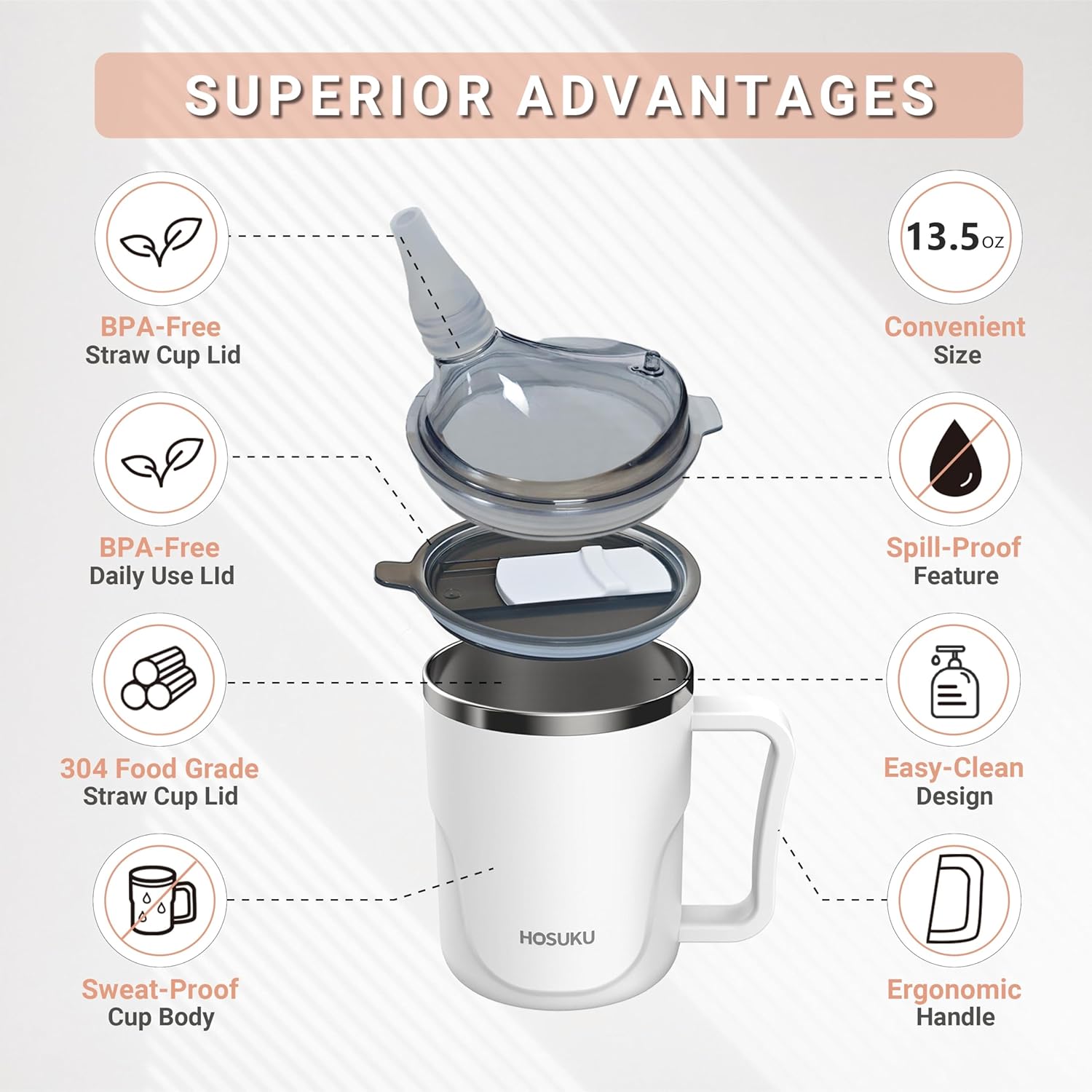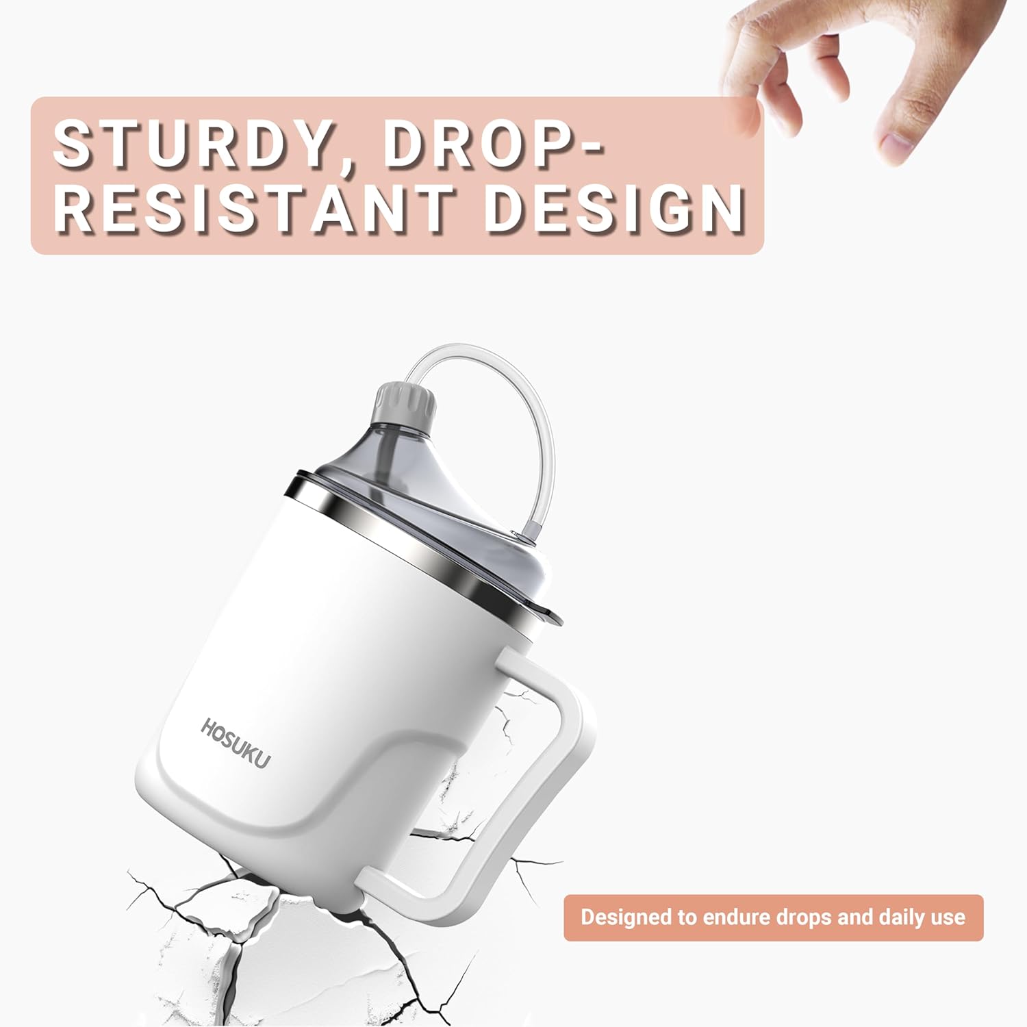 High-Quality Stainless Steel: Constructed from premium, food-grade stainless steel, this adult sippy cup for elderly spill proof is built to last and easy to clean. It effectively maintains beverage temperatures and resists wear and tear, making it a spill proof cup for adults with decreased hand strength.