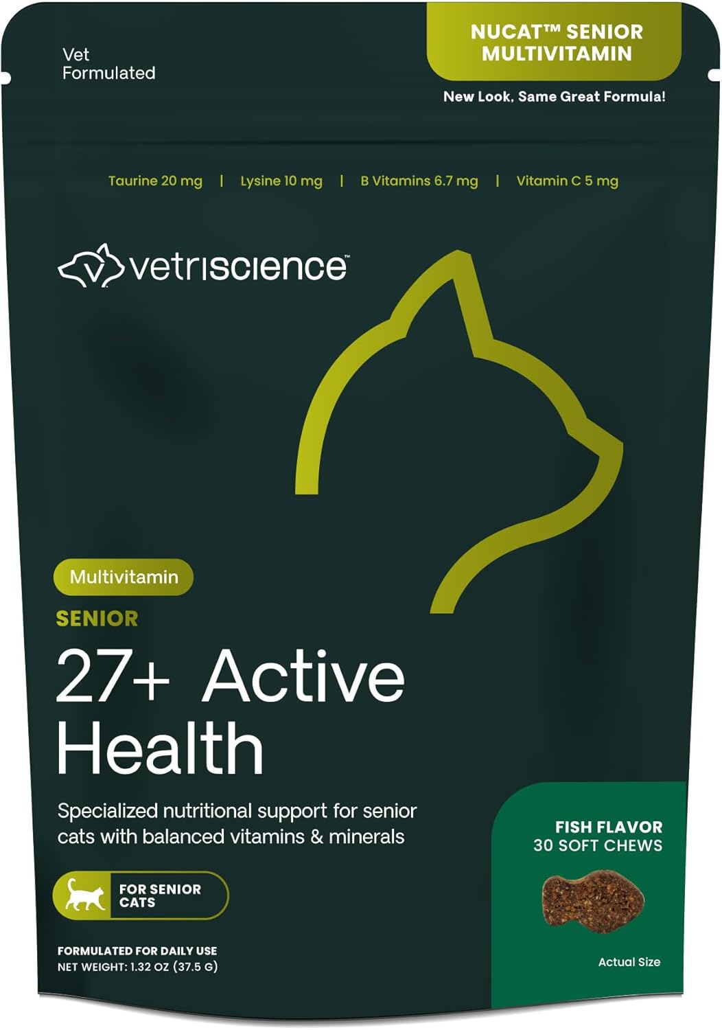 Complete cat multivitamin: From the veterinarian-formulated brand comes an all-in-one supplement that supports senior cats typically around 11 years of age with key nutrients not found in most cat food and that they cannot produce themselves